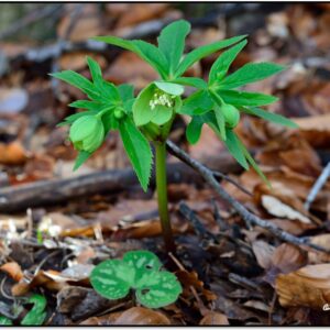El eléboro pertenece a un género de plantas perennes que florecen en invierno y comienzos de primavera, en bosques y zonas húmedas de Europa y Asia Menor. Destaca por sus flores discretas —verdosas, blancas o rosadas— y por ser una de las primeras en aparecer tras el frío.